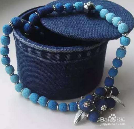胶带纸用完之后所剩下的圆形纸板芯也可以用来改造成收纳小容器,使用穿旧的牛仔裤作为面料包裹在表面,创意制作出一款实用精致的圆形首饰品收纳盒。