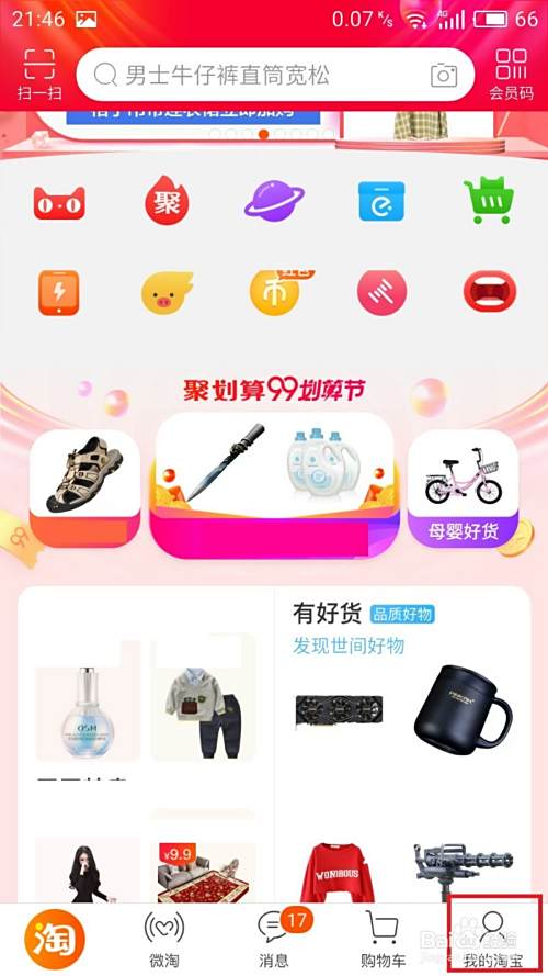 2.点击我的淘宝选项。