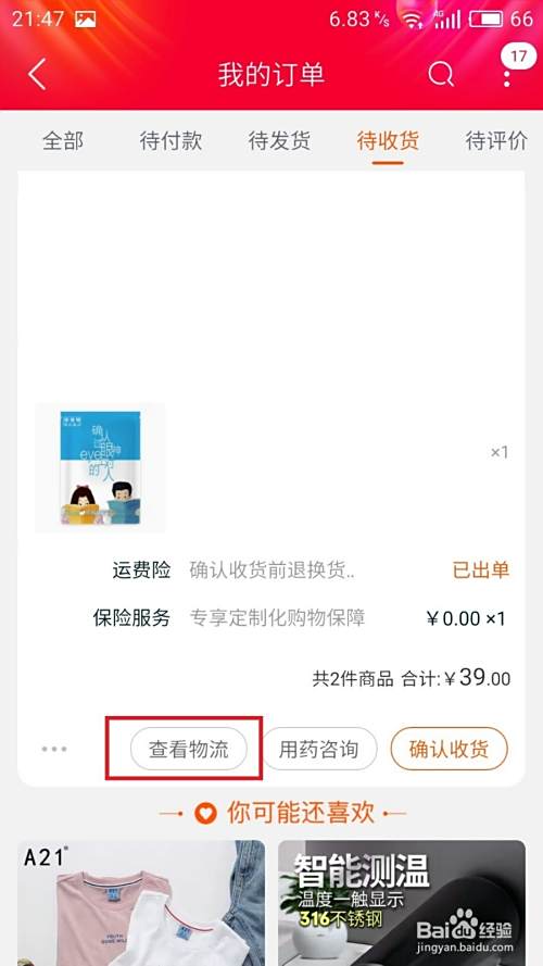 4.点击查看物流选项。