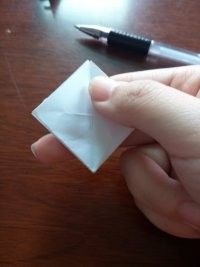 将隐藏的那面翻出来,再将朝下的三角形向上折,两边一致