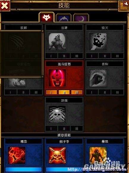 3.侩子手:前期狂战为了保证生存能力必须带盾,后期用爪子单挑boss,所以前期不点,后期点 满.