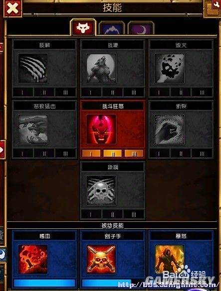 1.战争狂怒:群战肉抗怪越多越强,体现狂战二字意义的技能,前期5点足够.后期点满.