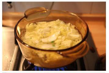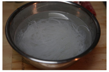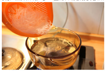 锅中放水及两片生姜烧开后放入泡软的粉丝;