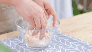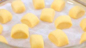 用手掌的力量把棉絮压到一起,刚开始的面团会有点粘手,揉着揉着,面团会渐渐变得有弹性,表面也变得光滑起来。