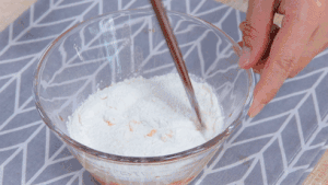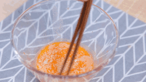 胡萝卜汁中加入酵母,用筷子搅拌至酵母融化。