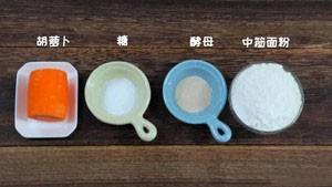 食材准备:中筋面粉(普通面粉)100克、胡萝卜60克、糖5克、酵母1克