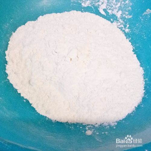 面粉100克,玉米粉100克倒入盘中。