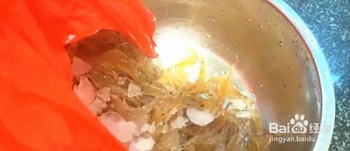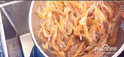 小白虾浸泡好之后,用流动的清水清洗两遍,清洗干净之后放在一旁备用。