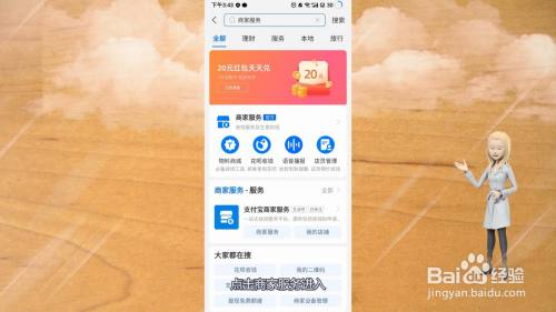 输入商家服务点击进入。