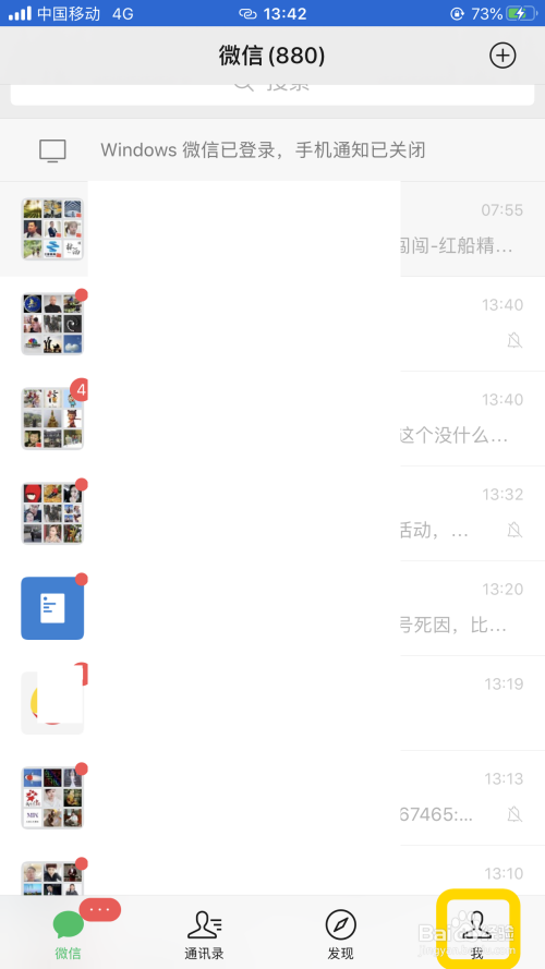 进入微信,点击右上角的【我的】;