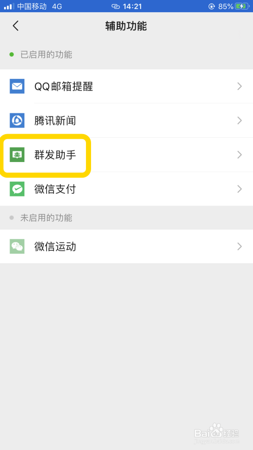 进入辅助功能,点击【群发助手】;