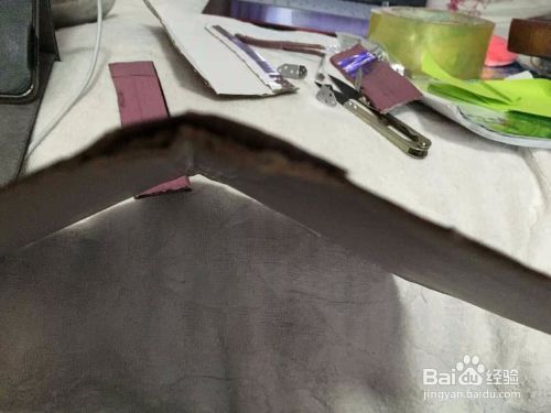 将修剪好的纸板对折,在折痕侧面把纸板小心地撕开,把贴片放进去来固定纸板。