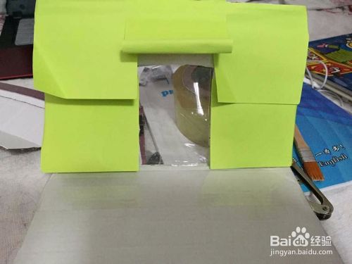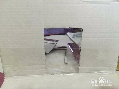 纸板固定好后,用剪刀将垂直面的纸板修出一个矩形小口作为阳台的小门。