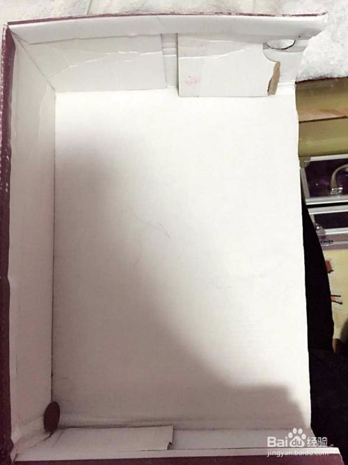 准备一个不要的鞋盒,用剪刀修剪出底面的纸板。(或直接准备一块矩形纸板)