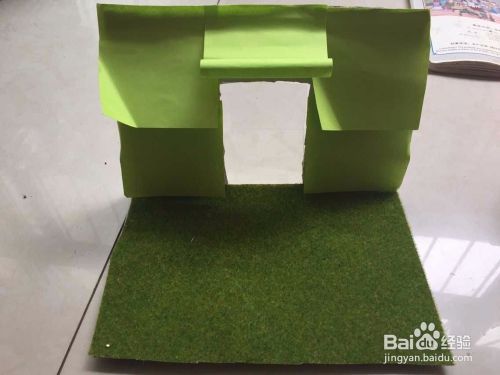 将原先的草坪模型用小钉子固定在另一侧纸板上。