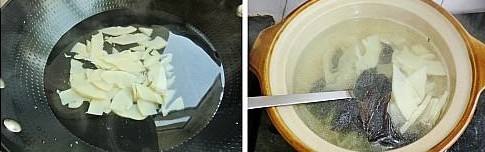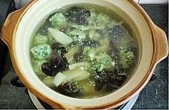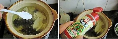 8·把肉圆捞出,汤倒入砂锅中,放入竹笋和泡发洗净的木耳。