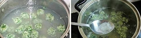 5·6·依次全部做完,肉圆浮起撇去浮沫关火即好。