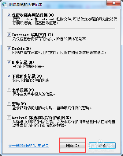 然后在删除浏览器的历史记录中,选择需要删除的内容,点击删除。