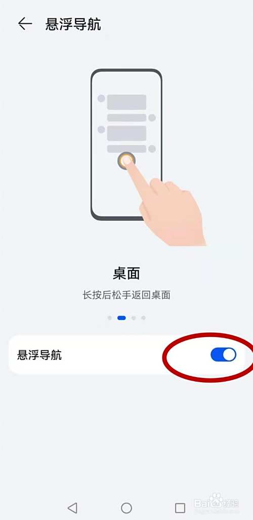 进入“悬浮导航”界面——点击【悬浮导航】按钮,按钮变成蓝色即设置成功。
