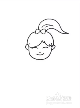 然后画出小女孩的五官表情,弯弯的眉毛,小鼻子和微笑的嘴巴。