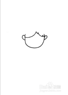 先在白纸上画出的头部,在补充上刘海和小耳朵