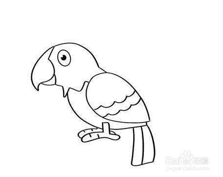 首先画出鹦鹉尖尖的嘴巴,圆圆的眼睛,以及鹦鹉的头部。