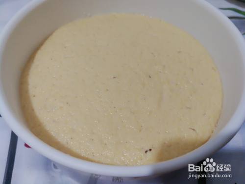 当面糊发酵至原面糊一倍大左右,并有蜂窝状,面糊就发酵好了。