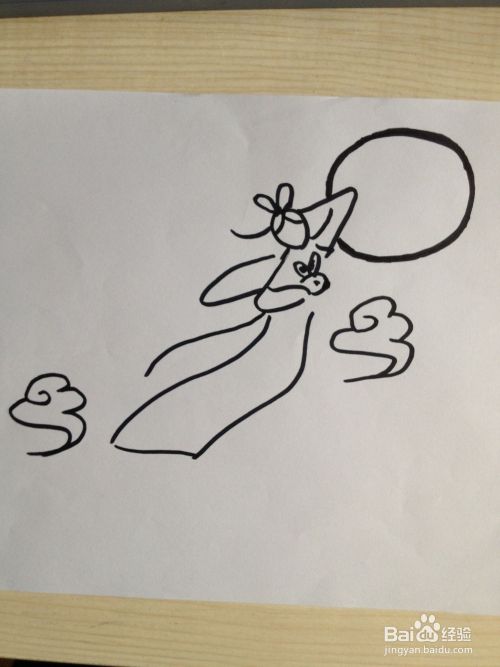 最后,在嫦娥的身畔左右,各画一朵彩云,就大功告成了。