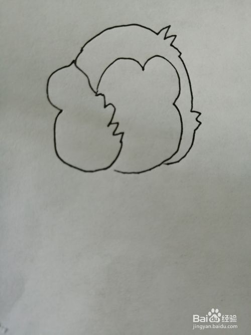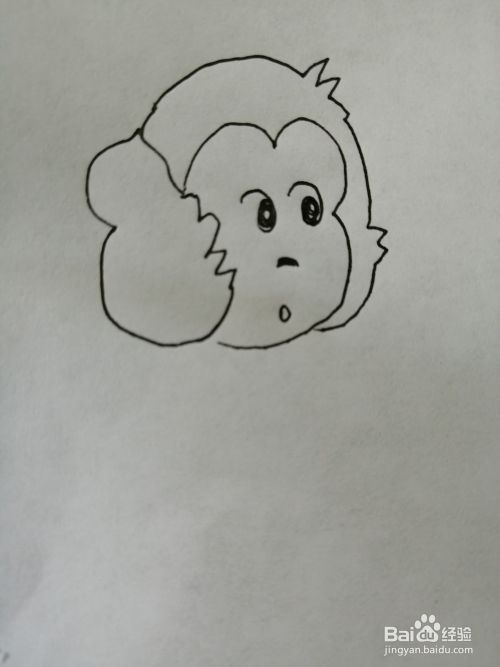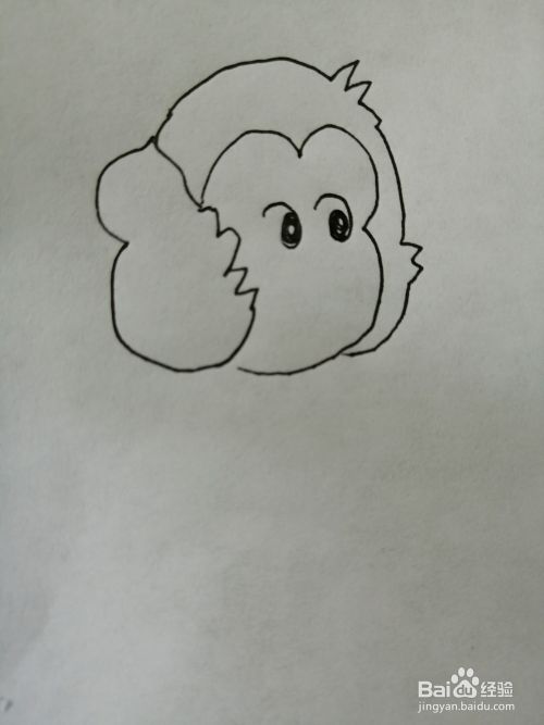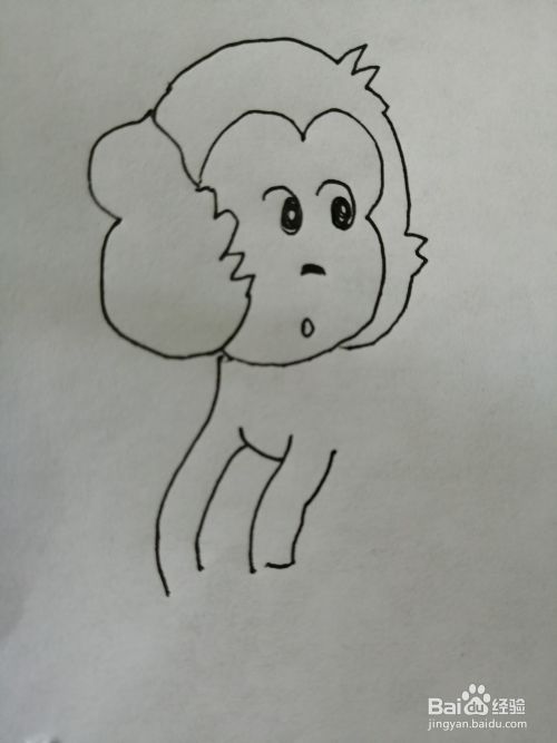 第五步,在可爱的小猴子的头部下面画出两只前腿。