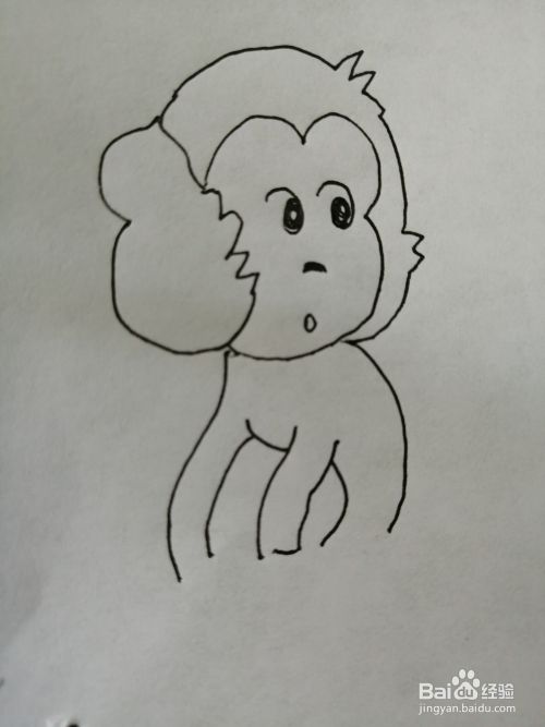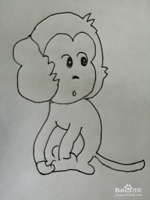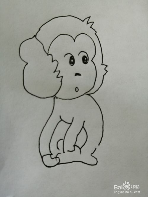 第六步,接着把可爱的小猴子的两条后腿也画出来。