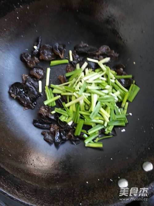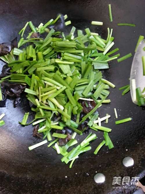 8再加入韭菜的叶,快速翻炒