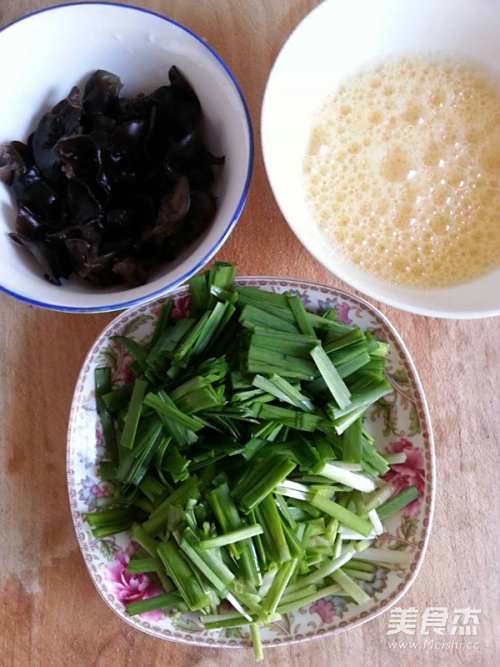 1原料:鸡蛋、韭菜、黑木耳(已经泡发)