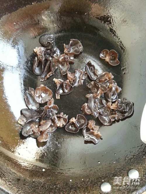 5锅内不用放油,直接下入黑木耳,加入盐翻炒