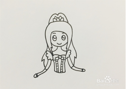 然后继续将陈思思下半身穿的小裙子画出来后,再来画出陈思思的双腿与鞋子。