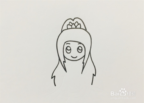 首先画出陈思思的刘海轮廓,画出头上的花朵装饰后,将头发轮廓补充完整,再来画出脸部线条与五官。