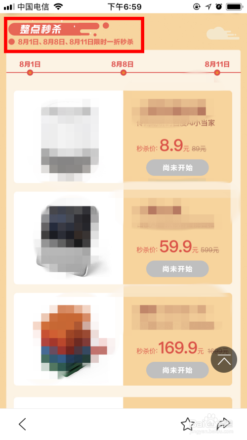 第二个是 整点秒杀 ,在8月1日、8月8日以及8月11日整点限时1折购买指定产品,数量有限先到先得哦。