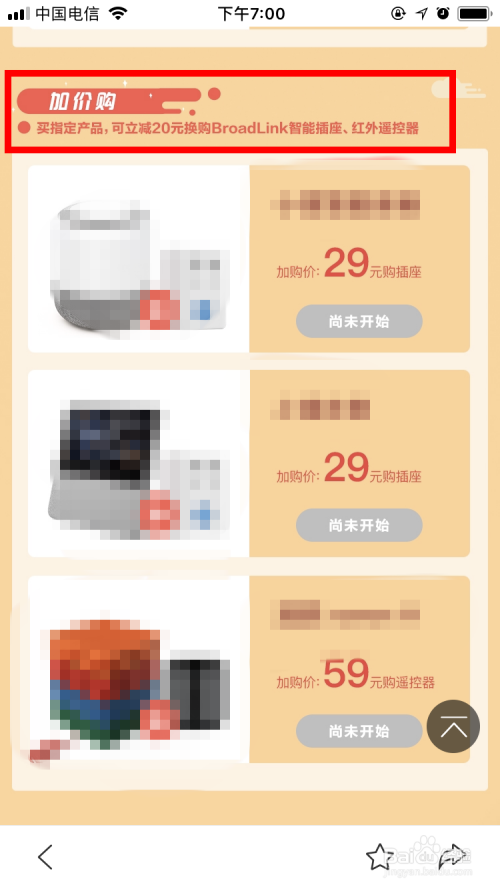 最后一个是,加价购,就是购买指定产品后,再加29元可得智能插座,加59元可得遥控器。当然,并不是所有的产品都可以加价购买插座或遥控器,只有指定的才可以哦。而且加价购买插座还是遥控器,都是指定的哦。