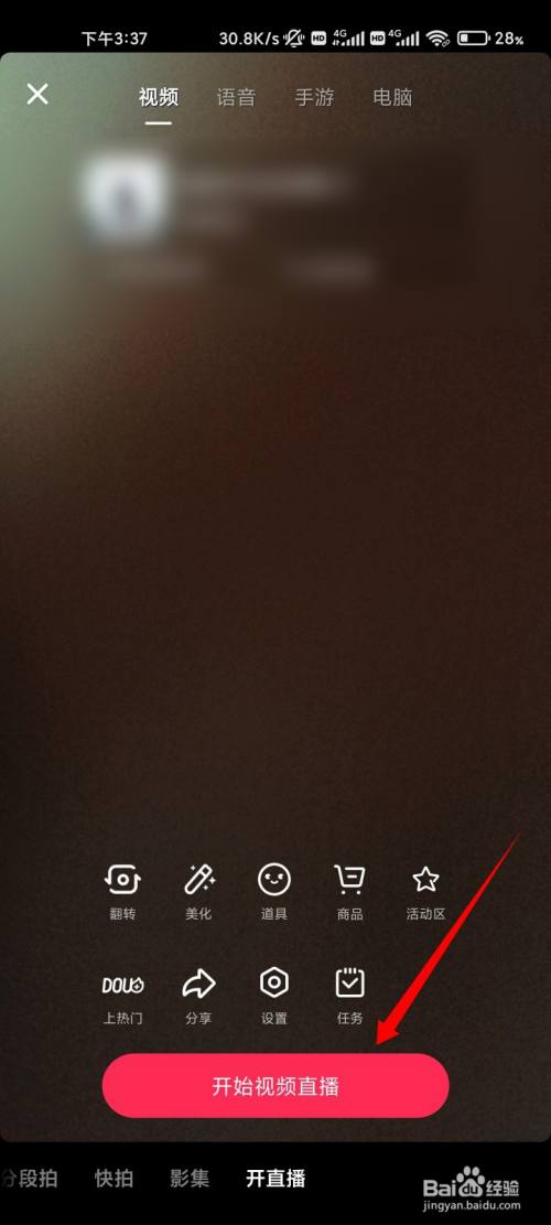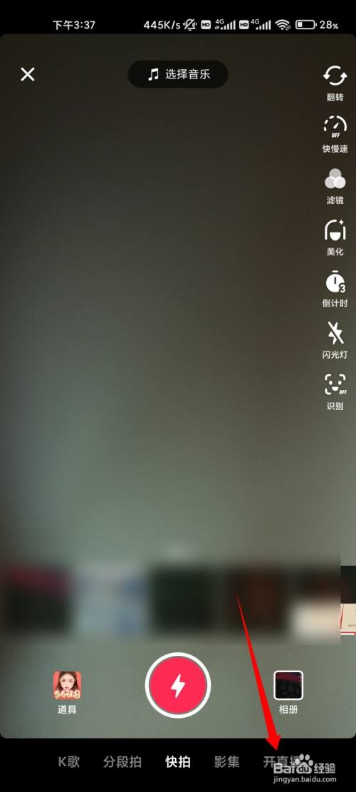 进入抖音拍摄页面,点击开直播的选项,点击开始视频直播,打开粉丝团标志,选中粉丝团的标签页即可查看粉丝团成员。