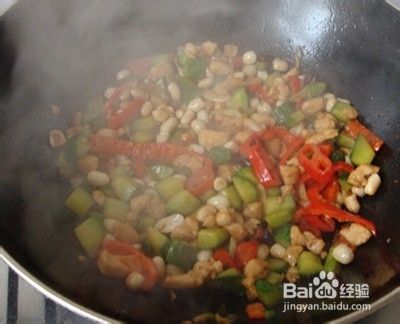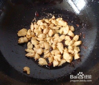 干红椒、八角放油里炒炒,然后倒入腌制差不多了的鸡肉