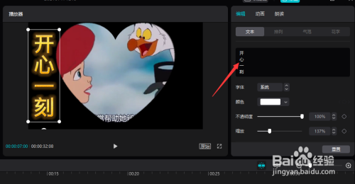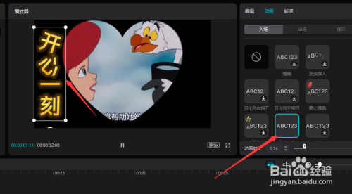 通常情况下,利用蒙版为视频添加边框后,我们还会在空白位置添加其它内容。在此我们以添加文本内容进行说明,切换到“文本”选项卡,选择其中一种文本样式进行添加。