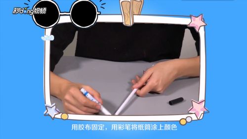 2将A4纸卷起,用胶布固定,涂上颜色。