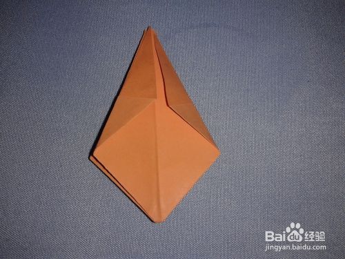 封闭口朝下。将上面的纸向中间折叠成小三角。