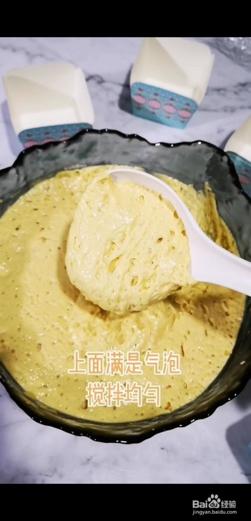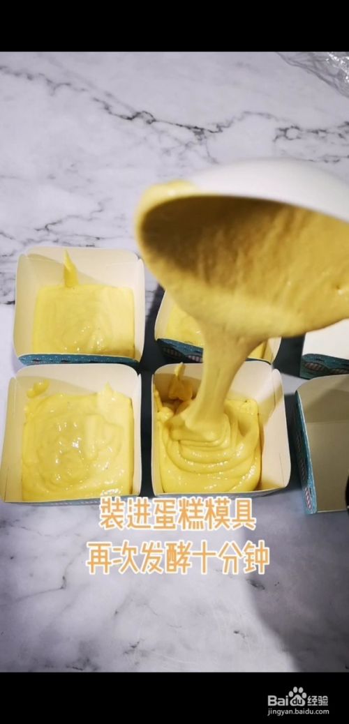 将面糊装进蛋糕模中。再次发酵十分钟。