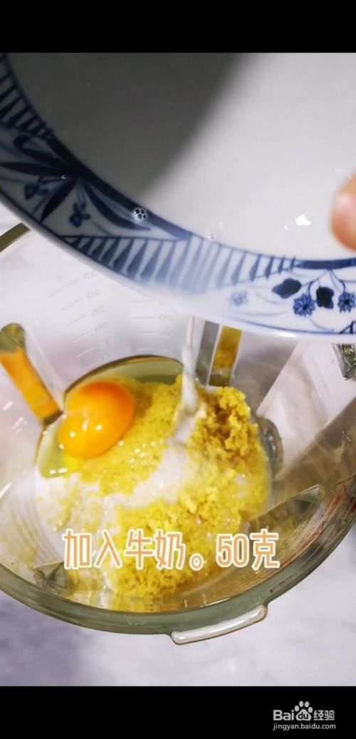 小米用温水浸泡两个小时后,清洗干净,放入破壁机中打入一个鸡蛋,加入50克牛奶。