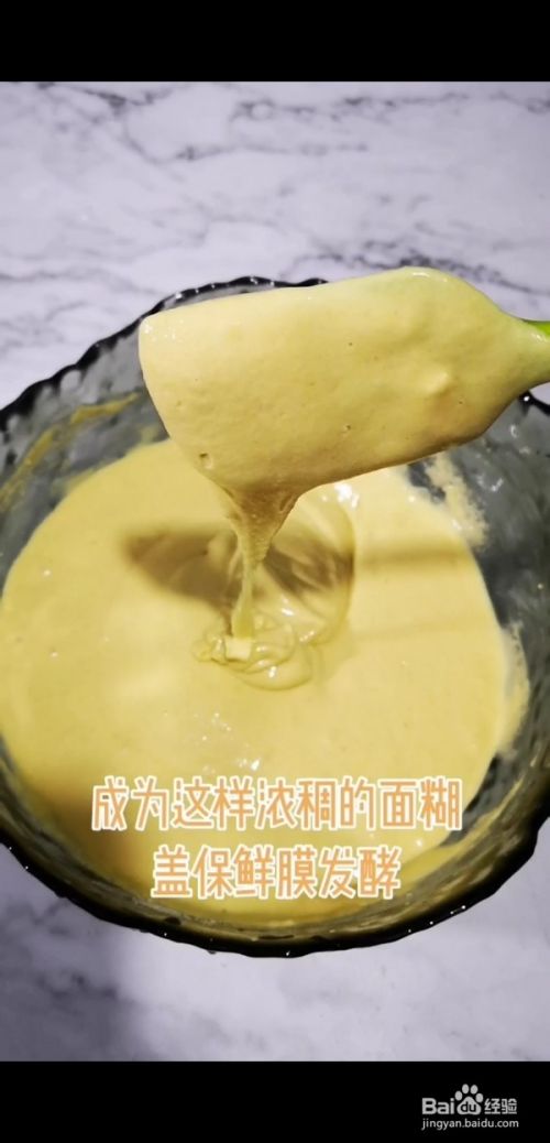 发酵至两倍大。上面可以看到明显的小孔洞,搅拌均匀。
