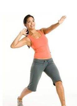 动作:站立,双脚打开,与臀同宽。膝盖微微弯曲,手臂放在身体两侧。用左腿带出弓步,两膝盖都弯曲90度,手臂伸向地面。突然收回左腿,回复初始姿势。两臂举在头顶的正上方。做8次,换腿,重复
