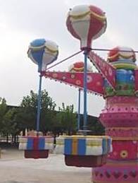 旋转类的娱乐设施,旋转幅度不大,有安全带,不刺激,安全系数高,比较适合2-5岁的小朋友玩。