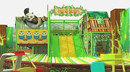 一个配套设施,先是开小车,车到终点后,爬上高台,然后上滑梯,从滑梯滑下来,高台有弹性,孩子可以在上面蹦跳。