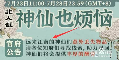 首先在7月23日11点的时候会上线神仙也烦恼的活动,大家可以接到公告
