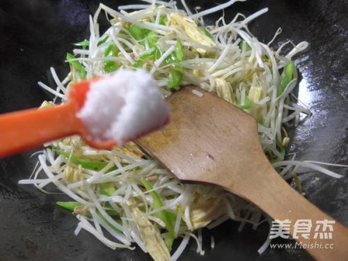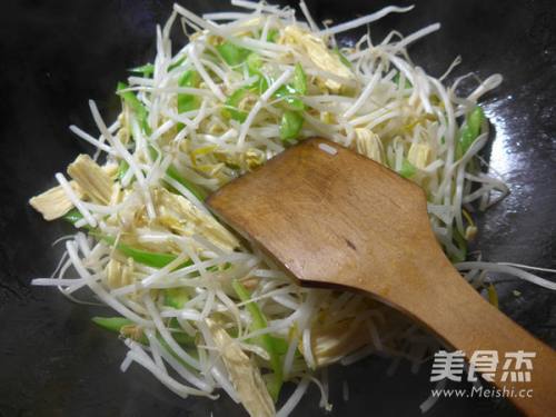 接着,合入已清洗好的绿豆芽翻炒翻炒至熟。
